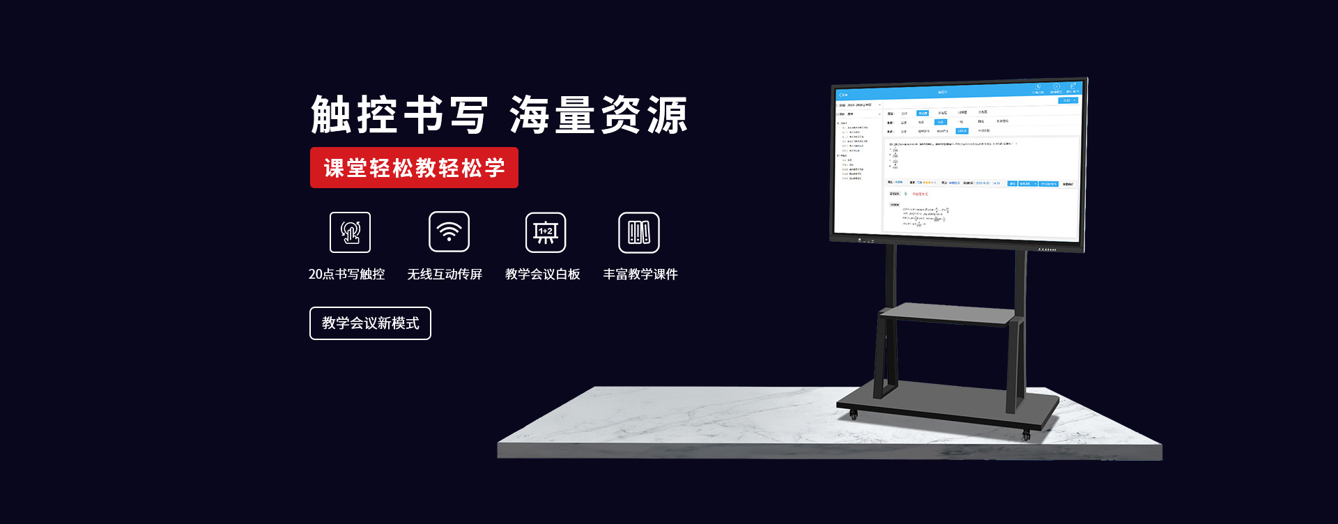 〔教育智慧黑板〕 是新一代教學(xué)顯示設(shè)備,具有高清顯示、高精度觸摸操作應(yīng)用,黑板書(shū)寫(xiě)教學(xué)功能與一身;內(nèi)置安卓、windows系統(tǒng),可滿足教學(xué)不同的應(yīng)用軟件使用;純平面書(shū)寫(xiě)黑板,適應(yīng)粉筆,無(wú)塵粉筆、水性粉筆書(shū)寫(xiě),適合不同環(huán)境應(yīng)用;觸摸切換書(shū)寫(xiě)黑板與屏幕顯示,可讓老師快速進(jìn)行教學(xué)應(yīng)用切換;純平面外觀,解決傳統(tǒng)推拉黑板的笨重,復(fù)雜的結(jié)構(gòu)特點(diǎn),大大提升了教師授課的體驗(yàn)感和演示效果。